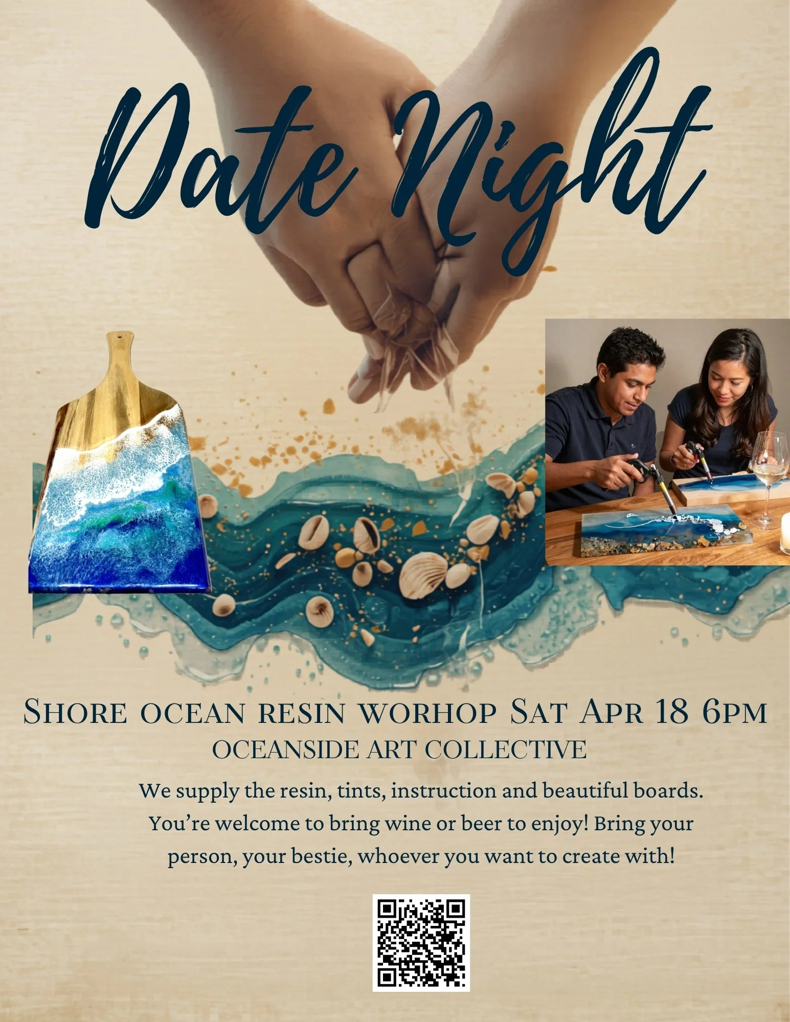 Grab your favorite person and join us for a fun in person Saturday evening where you'll dive into the art of making stunning ocean resin boards together!